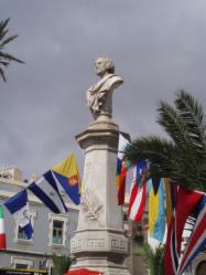 Grande Canarie, bien que la troisième île par sa superficie, est la plus peuplée de l'archipel avec environ 720 000 habitants, la moitié résidant dans la capitale Las Palmas. Les vieux quartiers historiques de cette dernière sont situés dans la partie sud de la ville, assez éloignée de la marina. C'est donc à vélo que nous partîmes le dimanche matin. Nous voulions voir le marché du Parque San Telmo que l'on nous avait recommandé à l'office de tourisme; Las, ce n'était qu'un marché de fringues et de babioles en tout genre, bref, sans intérêt, sinon l'uniformité des couleurs des étales et de leur parasol.