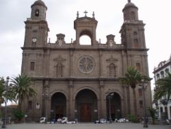 Après cette bonne entrée en matière, nous mîmes le cap sur la cathédrale de Santa Ana (nos vélos sont munis de boussole!), située juste à côté. Extérieurement, on a du mal à se rendre compte de son ampleur, tant elle est enserrée dans le vieux quartier. Elle semble de forme assez complexe; c'est en fait le premier temple espagnol construit aux Canaries à partir de 1500 environ, mais sa construction se prolongera jusqu'au 19ème siècle. Sa façade, qui aurait soit dit en passant besoin d'un bon nettoyage, est de style néoclassique. C'est en entrant que l'on se rend compte de l'espace incroyable de cet édifice dont le style intérieur peut être assimilé à du gothique.