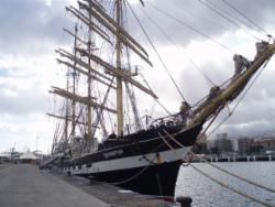 Ce même jour, une partie des bateaux du rallye des îles du soleil (les moins rapides) ont largué les amarres pour partir sur Dakar; nos amis Françoise et Jean-François ne partiront avec le reste de la flotte que le lendemain matin. C'est aussi le jour où arriva l'un des plus grands voiliers du monde, le quatre mâts russe Kruzenshtern; il est vraiment impressionnant, et ce qui l'est encore davantage, c'est d'imaginer les membres d'équipage monter dans le gréement sur les vergues pour ferler les voiles!