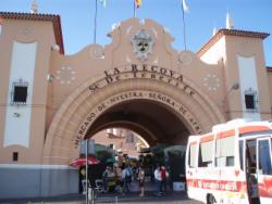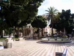 Nous mîmes le cap sur les hauts (et beaux) quartiers de la cité : nous avons ainsi remonté la totalité de la Rambla del General Franco (ici, on ne dit plus que la Rambla!), double voie avec terre-plein central engazonné et planté d'arbres, bordée de magnifiques hôtels particuliers. Nous descendrons ensuite l'avenue du 25 juillet jusqu'à la place du même nom, avec ses bancs faïencés à la façon de ceux que nous avions vus sur Grande Canarie dans le village de Firgas. Nous passerons place del Toros où se situe une arène apparemment désaffectée, puis pousserons jusqu'au parc la Granja avant de redescendre en bord de mer et rejoindre le bateau.