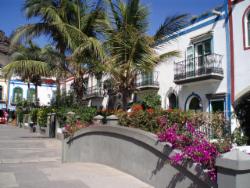 Nous continuerons ensuite vers le sud-ouest en direction de Puerto Rico et Puerto Mogan; toute la côte est belle avec ses larges échancrures et ses petites plages naturelles souvent en arc de cercle, nichées au fond de ces fjords. Mais pourquoi diable saccager ce patrimoine au nom de ce que l'on appelle ici du tourisme! La moindre parcelle de falaise est construite d'hôtels ou de résidences de vacances faites de blocs de béton (certes peints en blanc!), tels d'énormes Legos emboîtés les uns dans les autres! Seul Puerte Mogan échappe au massacre, et encore uniquement au niveau du port et de la marina, avec une imitation réussie de Port Grimaud. Nous y ferons d'ailleurs la pose déjeuner.