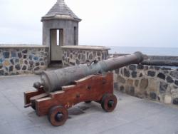 Nous poursuivîmes ensuite par la troisième ville de l'île, Puerto de la Cruz, ancienne ville de villégiature des anglais qui commerçaient avec l'île. En fait de port, il est minuscule et ne concerne que des barques de pêche. Malheureusement, le temps se dégradait et, pour la première fois depuis bien longtemps, nous avons eu droit à une après-midi complète de pluie. Nous y déjeunerons d'excellents poissons sur l'agréable place del Charco, puis partirons voir à pied le minuscule château de San Felipe et ses canons bordant la plage de sable noir.