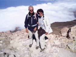 Eh bien, c'est vrai, la montée bien que courte est fatigante; déjà, au repos, le cœur essaie de compenser le manque d'oxygène en augmentant son rythme et il commence à battre vraiment la chamade dès les premiers efforts. Plusieurs poses de quelques minutes seront ainsi nécessaires pour atteindre le bord du cratère; celui-ci n'est d'ailleurs pas très grand, ce dont on peut se douter en voyant de loin la forme très pointue du sommet. Mais le volcan, bien qu'en sommeil, est encore en activité, en témoignent les fumerolles de souffre qui en sortent ainsi que l'air brûlant sortant de quelques trous minuscules sur le parcours.