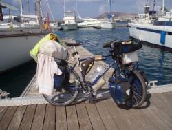 Comme à notre habitude, les deux premiers jours furent plutôt cools; vendredi, reconnaissance pédestre de la ville de Las Palmas (pas terrible), samedi, séances vélos à la recherche d'un loueur de voitures et de guides touristiques de l'île, puis promenade le long de la plage de las Canteras située de l'autre côté de la péninsule est de la ville. La soirée fut consacrée à récupérer nos mails sur la terrasse d'un café situé sur le quai, le Sailors'bar, qui deviendra notre QG pratiquement chaque soir!