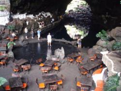 En continuant à longer la côte vers le nord, nous arrivons au lieu dit Jameos del Agua; il s'agit d'une curiosité géologique résultant de l'éruption du volcan La Corona : des tubes de laves y ont été formés, certains de deux kilomètres, enfermant des grottes, galeries, escaliers naturels et lacs souterrains, certains ayant été aménagés en salles de conférence ou de concert. Des éclairages bien étudiés magnifient encore davantage ces trésors naturels.