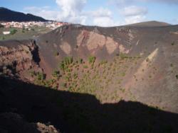C'est le jeudi 30 octobre que nous entreprenons la visite de l'île en voiture. La première journée fut consacrée au sud de l'île; avant de prendre la route vers le centre, nous effectuons la montée au sanctuaire de Las Nieves dans un cadre naturel d'une grande sérénité; même les églises comme celle-ci possèdent leur balcon canarien! Puis arrêt au belvédère Brena Alta d'où l'on a une jolie vue sur la baie et la ville de Santa Cruz. C'est ensuite la montée de la Combre Nueva pour redescendre côté ouest et attaquer l'ascension de la partie sud du volcan jusqu'au mirador de la Cumbrecita à 1400 mètres d'altitude (la partie sud du cratère est la moins élevée). Un chemin de randonnée nous mènera en une heure à travers une magnifique forêt de pins canariens jusqu'au point de vue de Las Chozas en passant à la punta de los Roques, avec vue plongeante dans le cratère.