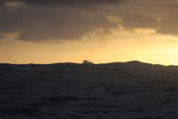 Pendant ce temps, trois storm pétrels nous auront suivis pendant quatre jours depuis les Galapagos avant sans doute de rebrousser chemin. Nous apercevrons lors de la cinquième nuit les lueurs de ce qui devait être un paquebot situé à plus de 20 milles sur bâbord : c'était la première rencontre, lointaine, d'un bateau depuis notre départ. Le second sera vu sur le radar lors de la soirée suivante, en même temps qu'un banc de dauphins qui viendra nous tenir compagnie pendant quelques minutes avec leurs cabrioles autour du bateau, sautant ensemble hors de l'eau de manière parfaitement synchronisée.